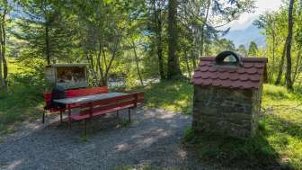 Der Grillplatz Inseli Stein liegt, wie es der Name schon sagt, auf einer kleinen Insel in der Thur. Diese erreicht man vom Wanderweg her über eine schmale Brücke. Hier steht sogar eine grosse Gigampfe. Die Feuerstelle ist gemauert wie ein Häuschen mit Kamin. Sie verfügt über einen rechteckigen Rost, der in der Höhe nicht verstellt werden kann. Gleich daneben steht ein Tisch mit zwei Bänken, dasselbe nochmals etwa 20 m entfernt. In einem kleinen Unterstand steht ein Holzvorrat zur Verfügung. Man hat einen schönen Blick auf die östlichen Churfirsten. Geocacher finden hier auch einen originellen Cache. Kinderwagentauglich: ja, Holz: ja, Trinkwasser: nein, WC: nein, Kapazität: ca. 16