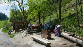 Der Grillplatz Windrädliweg liegt direkt am Waldrand. Er ist sehr gut eingerichtet und verfügt sogar über einen Unterstand, in dem sich ein grosser Tisch mit zwei Bänken befinden. Die Feuerstelle aus Metall verfügt über einen Rost, der leicht in der Höhe verstellt werden kann. Gleich daneben plätschert ein Brunnen. Auf der anderen Seite des Fahrweges steht ein WC-Häuschen zur Verfügung. Selbst ein Mülleimer ist vorhanden. An der Wand des Unterstands befindet sich ein Holzvorrat. Mehrere Bänke verteilen sich auf dem Grillplatz. Kinderwagentauglich: ja, Holz: ja, Trinkwasser: ja, WC: ja, auf der gleichen Wegseite ein Stück weiter im Wald, Kapazität: ca. 25