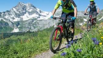 Bike-Vergnügen auf dem Gumen Enduro Trail. Der Fahrspass startet auf dem Gumen auf 1900 Meter.