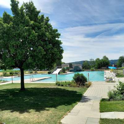 Es hat ein 50 m Schwimmerbecken mit Sprungturm, ein Nichtschwimmerbecken, ein Planschbecken, einen Spielbach, eine Grillstelle, ein Beachvolleyball-Feld sowie einen Kinderspielplatz und Tischtennis-Tisch. Der ideale Ort für die ganze Familie.