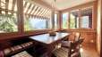 Sowohl dem Schlafzimmer wie auch dem Wohnraum ist je ein nach Süden orientierter Balkon vorgelagert. Die Lamellengeländer nehmen möglichst wenig von der fantastischen Sicht, wenn man hier – ungestört von Verkehrslärm – dem Vogelgezwitscher in den Bäumen und dem leisen Plätschern des Brunnens im eigenen Garten lauscht. Lädt das Wetter nicht dazu ein, draussen zu sein, bietet sich Ihnen der rundum mit Fenstern versehene Erker zwischen den beiden Balkonen als Rückzugsort mit Naturanschluss an.