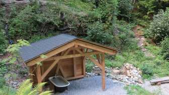 Die Heil- und Schwefelquelle liegt ca. 10 Minuten oberhalb der Talstation der Brunnenbergbahn .