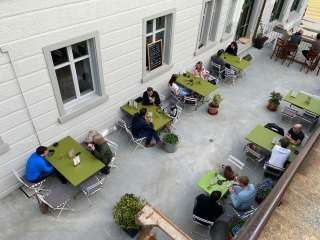 Im Hochparterre erwartet die Gäste ein gemütliches Lokal mit Holz-Bar. Hier gibt es vor Ort gebraute Biere wie auch Gastbiere - frisch gezapft ab bis zu 14 Zapfhahnen - zu geniessen. Im hinteren Teil des Lokals ist Platz für Degustationen. Ein kleines aber feines Speiseangebot rundet das Angebot ab.