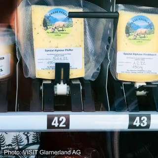 Feine Glarner Produkte sind so 24 Stunden / 7 Tage die Woche erhältlich. Der Automat ist einfach zu bedienen.