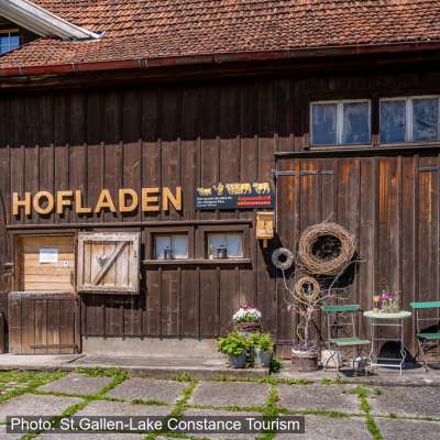 Das kleine Hoflädeli der Familie Züst liegt direkt am Veloweg in Wolfhalden und bietet die ideale Gelegenheit, regionale und frische Zutaten für das nächste Abendessen oder für unterwegs einzukaufen.