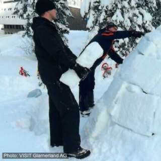Unter kundiger Anleitung von erfahrenen Instruktoren lernst du, wie man ein stabiles Iglu aus Schneeziegeln baut. So richtig Spass macht das, wenn zwei Teams gegeneinander antreten: Welches Bauteam kann wohl als erstes das Richtfest im eigenen Winterchalet feiern?