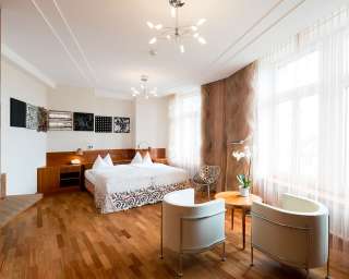 Die ruhig gelegenen und stilvollen Junior Suiten überzeugen mit hohem und lichtdurchflutetem Raum, sind mit einem Doppelbett ausgestattet und bieten einen Ausblick über die Altstadt von St.Gallen. Die Zimmer verfügen über eine Nespresso Kaffeemaschine, eine individuell regulierbare Klimaanlage sowie eine Sitzecke. Die hellen und grosszügigen Badezimmer aus Marmor und Granit sind mit einer Badewanne und teilweise mit einem Bidet ausgestattet.