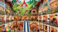 Einkaufszentrum für Kinder mit Trampolinhalle und Spielplatz.