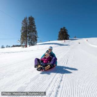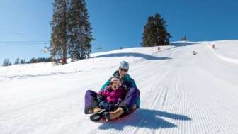 Ob mit Bob oder Schneerutscher, Kinder können sich hier auf dem Schlittelhang austoben und so viele Fahrten machen, wie sie möchten.