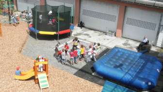 Schaukeln, Rutschbahn, Drehkarrussell, Trampolin, Kletterwände und Wasserspiele. Mami und Papi können sich auf den Bänklis ausruhen und die Sonne geniessen, während sich Ihre Kinder auf dem Spielplatz austoben.