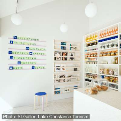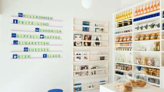 Der Kiosk hat ein klassisches Sortiment in überschaubarer Grösse, guten Kaffee sowie ein wechselndes Angebot an saisonalen Produkten aus der näheren Umgebung.
