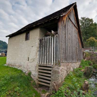 Am westlichen Rand der Rütiwiese, direkt am Rütibach, steht in Unterterzen eine über 250 Jahre alte, freistehende Kornmühle.