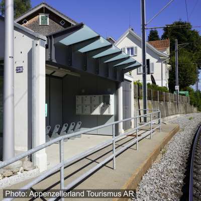 Die Lademöglichkeit befindet sich beim Velounterstand verteilt auf 8 Schliessfächer, welche mit einer 2-Franken-Münze abgeschlossen werden können. Es ist ein eigenes Ladegerät erforderlich.