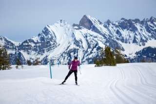 Langlaufschritt für Langlaufschritt durch die tiefverschneite Winterlandschaft: Am Flumserberg sind Langläufer:innen aller Könnerstufen in ihrem ganz eigenen Tempo unterwegs. Sportlich oder doch lieber ganz entspannt? Insgesamt 20 Loipenkilometer laden dazu ein, die Natur aktiv zu geniessen.