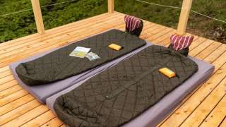 Gäste schlafen im Schlafsack auf einer Holzplattform auf der Alp Habergschwänd mitten in den Bergen. Hier kann man den Sternenhimmel und das Outdoor-Erlebnis so richtig geniessen. Das Berggasthaus Habergschwänd mit den sanitären Anlagen liegt in Fussnähe. Sollte das Wetter nicht mitspielen, kann alternativ im Stroh oder im Mehrbettzimmer im Berggasthaus übernachtet werden.