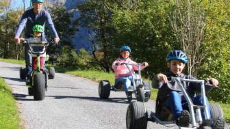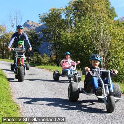 Die Fahrt von der Bergstation Ämpächli ins Tal mit einem Mountaincart oder einem Trottinett bietet Spass und Adrenalin pur für Gross und Klein