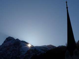 In Mühlehorn lässt die Sonne jeweils im November und Februar sogar die goldene Kugel des Kirchturms aufleuchten.