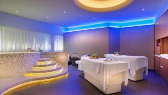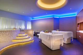 Auf 70 m2 finden Sie einen Whirlpool, eine Regendusche, ein Dampfbad, eine Sauna sowie eine mit Plasma TV ausgestattete Ruhelounge.