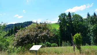 Der Obstgarten in Hemberg vereint eine Hochstamm-Obstanlage mit einer modernen Niederstammanlage. Alte und neue Sorten direkt nebeneinander zeigen eindrücklich die Entwicklung im Schweizer Obstbau in den letzten Jahrzehnten. Die 105 Hochstämme sind mehrheitlich traditionelle Apfel-, Birnen-, Zwetschgen-, Kirschen- und Pflaumensorten. Sie lernen Kuriositäten wie den «Birnenförmigen Apfel», den «Totenapfel» oder das «Allerheiligenchriesi» kennen und können auf dem historischen Lehrpfad in die Obstvielfalt vergangener Zeiten eintauchen. In der Wildobsthecke werden grossfruchtige Sorten vorgestellt und im Permakulturgarten werden günstige Mischkultur- Kombinationen gezeigt.