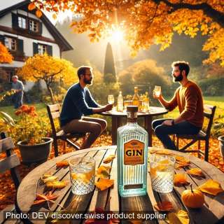 Eine Flasche feinster Gin, destilliert in St. Gallen mit botanischen Zutaten aus der Region. Perfekt als Souvenir oder Geschenk.