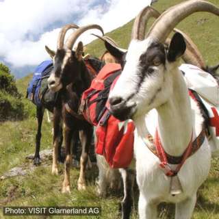 Die Ziegen-Präsenz ist aussergewöhnlich. In unseren Breitengraden eignen sich Ziegen ausgezeichnet als Lasttiere im alpinen Gelände. Ihre Trittsicherheit und Ausdauer ist bestechend und sie sind auch angenehme und gesellige Begleiter auf Gebirgstouren. Da die Touren hauptsächlich in den Glarner Alpen durchgeführt werden, ergeben sich viele Möglichkeiten, eine einzigartig liebliche, aber auch schroffe Bergwelt kennen zu lernen.