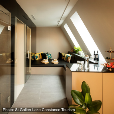 Private Spa Superior: Dampfbad / Sauna, Finarium / Erlebnisdusche / Liegestuhl mit grosser Terrasse / Lounge / Snacks / Getränke / Ausblick über die Stadt
