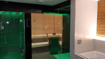 Private Spa Deluxe: Dampfbad / Sauna, Finarium / Erlebnisdusche / Whirlwanne / Liegestuhl / Lounge / Snacks / Getränke / Ausblick über die Stadt