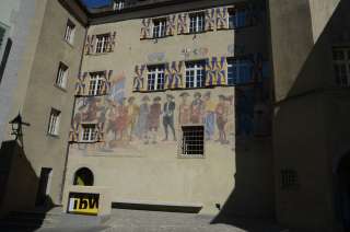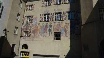 Das Rathaus in Maienfeld, ein dreigeschossiger Bau mit achteckigem Treppenturm, wurde 1589 umgebaut. Es trägt die Inschrift Nütze die Zeit und zeigt seit 1930 ein patriotisches Bild auf der Fassade.