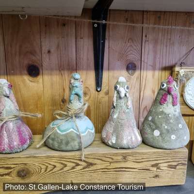 Immer wieder aktuelle Kunstwerke sind im Verkaufswagen gegenüber der Prima Landi in Goldingen zum bewundern und kaufen ausgestellt.