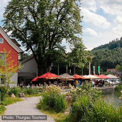 Geeignet für einen kurzen Trink-Stopp mit Snack oder auch ein leckeres Mittagessen mit einer grossen Auswahl von Salat bis Burger.