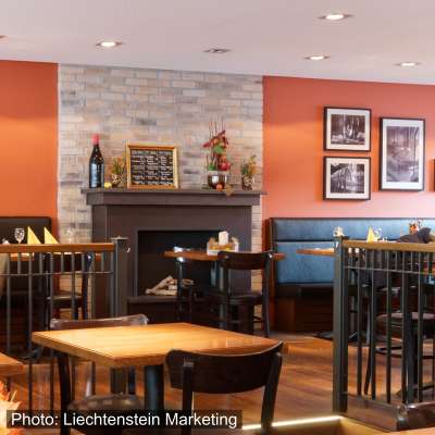 Das Restaurant lädt zur Kaffeepause, zum Mittag- oder Abendessen oder zu einem Feierabendbier ein und bietet eine Sonnenterrasse mit Blick auf Schloss Vaduz.