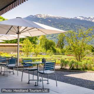 Das Pinot ergänzt das Ensemble der Klinik Gut in Fläsch als Insel der Kulinarik, der Genusses bei passendem Ambiente und einzigartiger Terrasse im schönen Garten.