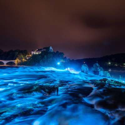 Nach dem Eindunkeln können Sie den grössten Wasserfall Europas beleuchtet erleben.