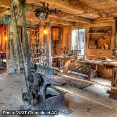 Während des geführten Rundgangs durch die Schiefertafelfabrik Elm, der eineinhalb Stunden dauert, erfährt man, wie die bestbekannten Schreib- und Jasstafeln in Elm hergestellt wurden. Mit den noch funktionstüchtigen und einzigartigen Maschinen wird die Herstellung der Schieferprodukte vorgeführt. Eng verbunden mit der Geschichte des Schieferabbaus und der Schieferverarbeitung im Sernftal ist die Tragödie des verheerenden Bergsturzes von Elm vom 11. September 1881.