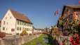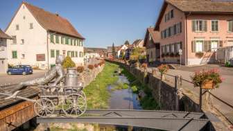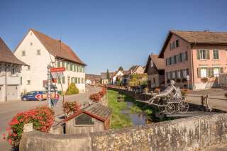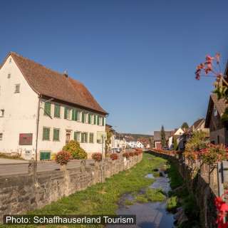 Der Dorfkern reizt mit seinen Fachwerkhäusern und wird dazu vom Dorfbach geprägt, der mitten durch Schleitheim fliesst, der über den Sommer mit Geranien und in der Adventszeit mit Christbäumen schön geschmückt wird.