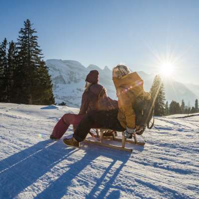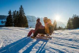 Schlitten, Holzschlitten mit Kindersitz, Bob, Zipfelracer, Airboard, Balancer, Snowscooter, Rennschlitten, Skibob und Monsterbike