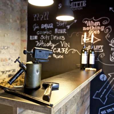 Wo urchige Steinwände auf moderne Technik, Kunstwerke auf gastronomische Highlights und Bestehendes auf individuell Wandelbares treffen, feiern Gäste bis sich die Eisen biegen. Ob für eine Geschäftsfeier, eine Hochzeit oder einen Geburtstag, die Schmitte bietet Platz für 10 bis 60 Gäste.