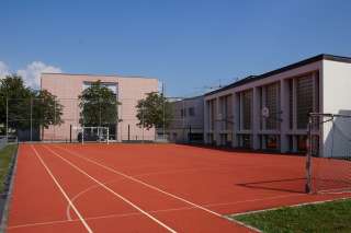 Neben der Einzelturnhalle gibt es einen Aussenplatz für verschiedene Sportarten.