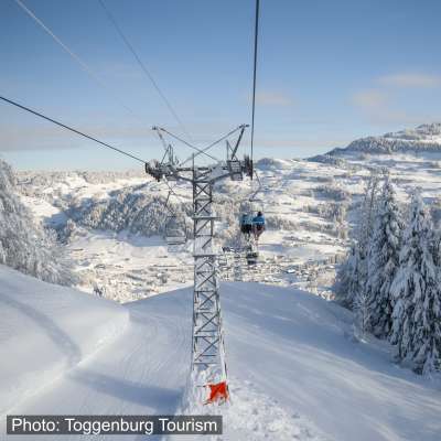 Von Krummenau aus können Sie sich mit der Sesselbahn Krummenau-Wolzenalp zum Rietbach hinauf fahren lassen und dabei das Tal der Thur aus luftiger Höhe betrachten.