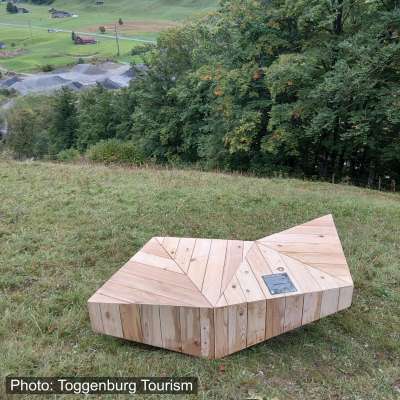 Dieses Bänkli ist Teil der Ruheoasen entlang des Thur- und Neckerwegs, gefertigt aus heimischem Holz und bewusst reduziert gestaltet.