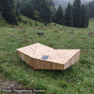 Dieses Bänkli ist Teil der Ruheoasen entlang des Thur- und Neckerwegs, gefertigt aus heimischem Holz und bewusst reduziert gestaltet.