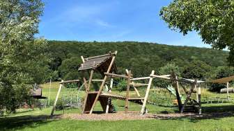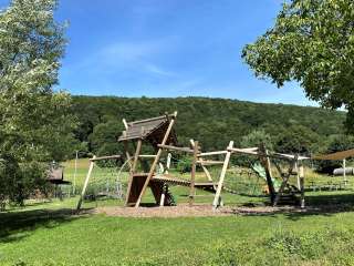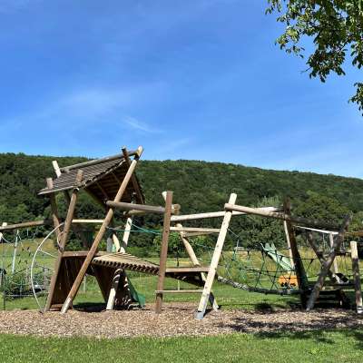 Ein Klettergerüst, eine Rutschbahn, Wipp-Tiere, ein Tunnel und weitere Spielgeräte lassen Kinderherzen höherschlagen. Ebenfalls hat es einen Picknick-Tisch zum Picknicken.