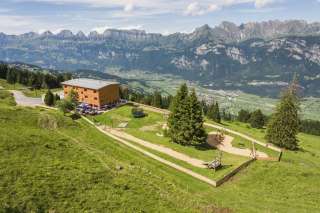 Direkt neben der Terrasse des Restaurants erwartet die kleinen Gäste ein großer, abwechslungsreicher Spielplatz, der für viel Spaß und Abenteuer sorgt. Zu den Highlights gehören eine aufregende Zipline, auf der Kinder durch die Luft fliegen können, sowie mehrere Schaukeln, die zum Höhenschwingen einladen. Besonders beliebt ist die Hängemattenschaukel, die sanft hin und her schwingt und für entspannte Momente sorgt. Eine Rutschbahn sorgt für schnelle Abfahrten, und ein Trampolin lädt zum Hüpfen und Springen ein. Die Lage des Spielplatzes direkt neben der Terrasse des Restaurants ermöglicht es den Eltern, ihre Kinder im Blick zu behalten, während sie in Ruhe eine Mahlzeit genießen. Der große Spielplatz bietet für jedes Kind das passende Abenteuer und ist der ideale Ort für eine gelungene Familienzeit.