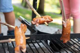 Beim Spielplatz hat es auch eine Feuerstelle mit Grillrost und Holz.