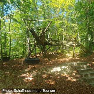 Direkt am Waldrand bei Osterfingen liegt dieser Abenteuerspielplatz. Ein grosses Gerüst aus Holz zum Klettern und eine Schaukel versprechen Spass für Kinder. Ebenfalls hat es gleich beim Spielplatz eine Grillstelle mit Tischen und Bänken. Perfekt, um eine stunden im Wald in der Natur zu verbringen, ohne dass es jemandem langweilig wird.