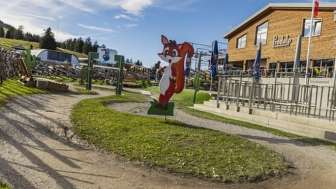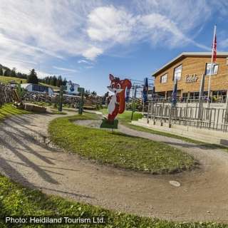 Ein abwechslungsreicher Spielplatz mit einem Hüpfkissen und einer Hüpfburg, die den Kindern viel Raum für energievolles Springen und Toben bieten. Es gibt mehrere Schaukeln, die sowohl für kleinere als auch für größere Kinder geeignet sind. Ein Spielturm mit Kletterelementen und einer kleinen Rutschbahn lädt zu Abenteuern und ersten Kletterversuchen ein. Außerdem sorgt ein spezieller Veloparcours für die Kleinen dafür, dass sie mit ihren Fahrrädern oder den vorhandenen Laufrädern sicher fahren und ihre Geschicklichkeit verbessern können. Ein Ort voller Bewegung und Spaß für Kinder unterschiedlichen Alters! In der Nähe befindet sich das Restaurant Prodalp, sowie der Kletterturm «Cliimber».