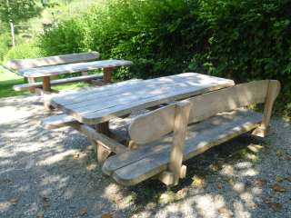 2 Tische und 4 Bänke sind vorhanden.