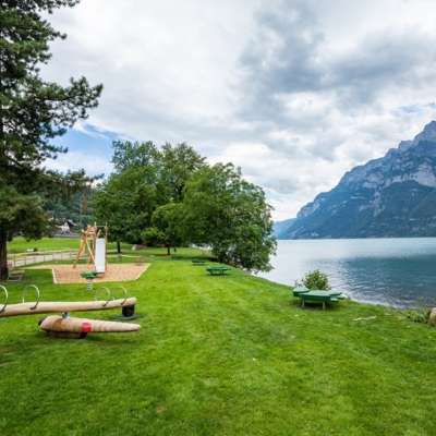 Das Strandbad Mols bietet eine grosszügige Liegewiese und einen kleinen Kieselstrand. Der frei zugängliche Strand ist Teil des Spielerlebnisses Walensee und verfügt über einen integrierten Spielplatz.