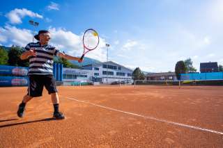 Der Tennisplatz in Wildhaus befindet sich gegenüber vom Curlingzentrum.