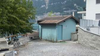 Kleines Toilettenhaus, versteckt hinter den Geleisen, direkt am Walensee.
